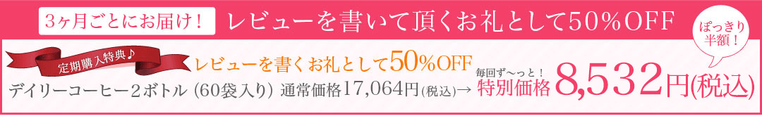 デイリーコーヒーを公式サイトで定期的に購入することで、50%OFFの割引が適用されることが多いです。